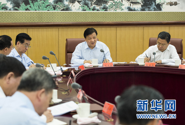 5月21日,中共中央政治局常委、中央黨的群眾路線教育實踐活動領導小組組長劉云山在北京主持召開中央黨的群眾路線教育實踐活動領導小組第一次全體會議。新華社記者 王曄 攝