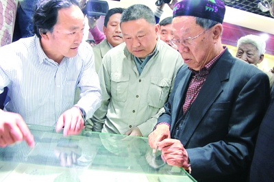 王蒙(右一)在“王蒙書屋”里參觀。
