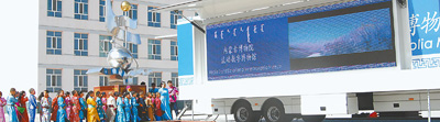 相比于以往,這次“文化下鄉”輕便了許多。“我們這次計劃除數字移動博物館車外,再走兩輛小車開道。而在做活動的時候主力只有4個人,兩個技術人員,還有蒙、漢解說員各一位。” 內蒙古博物院工作人員介紹說,“在往年走基層文化宣傳活動時,展板一般要更新10塊左右,光民族禮儀現場展演一項,舞蹈演員就要近20人。”