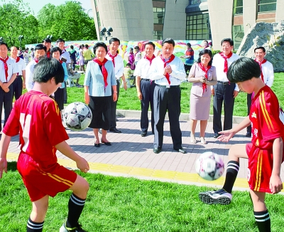 5月29日,中共中央總書記、國家主席、中央軍委主席習(xí)近平在北京市少年宮參加“快樂童年 放飛希望”主題隊日活動。這是習(xí)近平在觀看孩子們練習(xí)足球。
