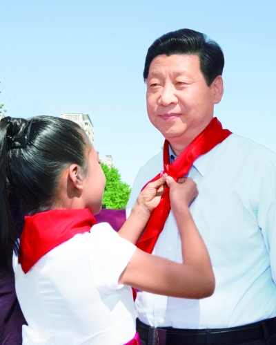 5月29日,中共中央總書記、國家主席、中央軍委主席習(xí)近平在北京市少年宮參加“快樂童年 放飛希望”主題隊日活動。這是少先隊員為習(xí)近平佩戴上紅領(lǐng)巾。新華社記者 李學(xué)仁攝