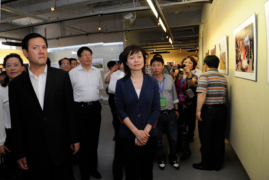 第三屆全國農民攝影大展6月8日在吉林長春開幕。圖為中國文聯黨組成員、書記處書記李前光(左一)等與會領導參觀展覽。 浦時 攝