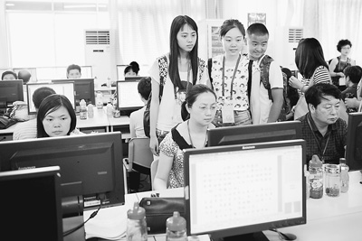 6月14日,幾名考生在貴州師范大學參觀高考閱卷過程。當日,貴州省舉行“高考開放日”活動,十余名家長、考生來到貴州師范大學高考閱卷場,在工作人員的帶領下參觀高考試卷的評閱過程。
