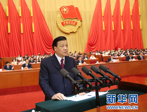 6月17日,中國共產主義青年團第十七次全國代表大會在北京人民大會堂開幕。這是劉云山代表黨中央致祝詞。 新華社記者劉衛兵攝