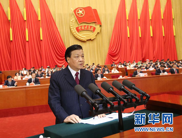 6月17日,中國共產主義青年團第十七次全國代表大會在北京人民大會堂開幕。這是劉云山代表黨中央致祝詞。 新華社記者劉衛兵攝