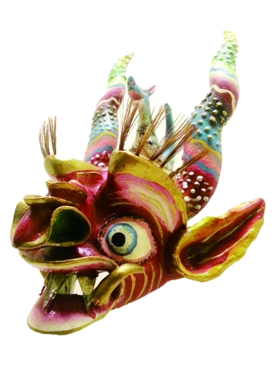在如今的美洲,面具還常常出現在節日中,如冬季贈禮節,但原有的宗教權威和神圣光環已大為衰減。展柜里有一張呈淚滴形的面具,其富于表現力的容貌意味著某種侵略性,可是那大張著的嘴里竟然“不靠譜”地豁了幾顆牙,顯得很是滑稽,嚴重消減了薩滿儀式的嚴肅性。在中美洲,以至于整個拉丁美洲的化裝舞會和狂歡節上,面具被賦予模仿的功能,這在玻利維亞的狄阿布拉多面具、墨西哥恰帕斯的索西族面具上更是表現得淋漓盡致。