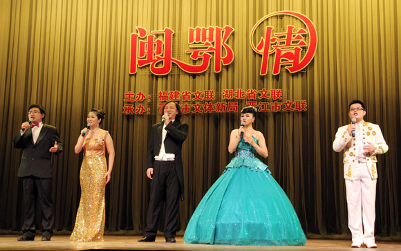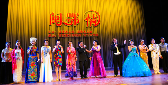 演出中,鄂閩兩地藝術家同臺高歌。傅正明/攝