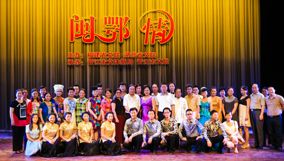 演出結束后,參演的鄂閩兩地藝術家及采風團成員合影留念。傅正明/攝