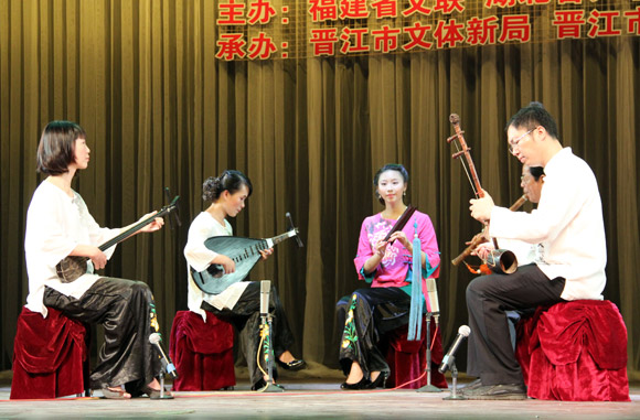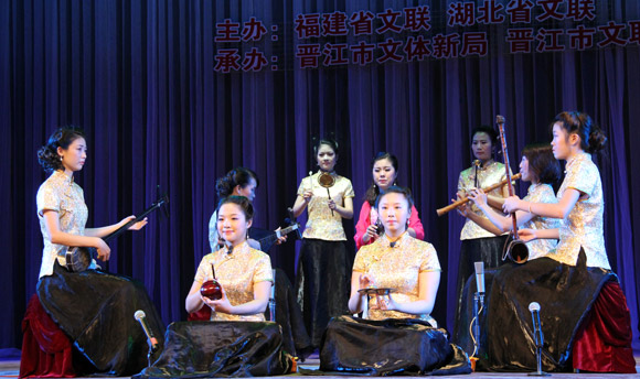晉江市南音協會陳小紅、丁美姍等南音對唱《春光明媚》。中國藝術報 喬燕冰/攝