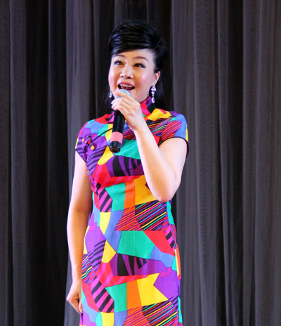 國家一級演員李蘭萍演唱現代京劇《紅燈記選段《光輝照兒永向前》《都有一顆紅亮的心》。傅正明/攝
