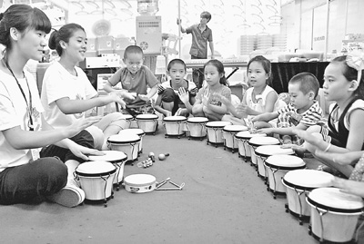 8月1日,在寧夏銀川舉辦的第三屆中國西部童博會上,孩子們正在與展館老師們進行音樂互動。童博會舉辦以來,主辦方通過大型嘉年華游藝設施、互動教育、文藝表演等一系列少兒文藝活動,為暑期的孩子們奉上豐盛的文化娛樂大餐,成為孩子們消暑納涼,游戲休閑的好去處。