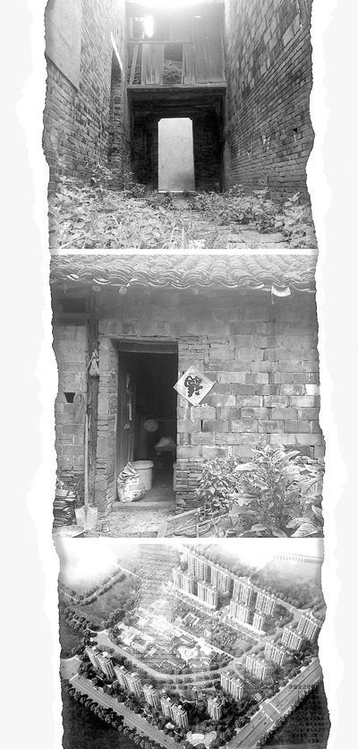 從上至下為:破舊的古更樓、不宜居住的老宅、第四次規劃圖。本報記者 姚雪青攝 制圖:蔡華偉