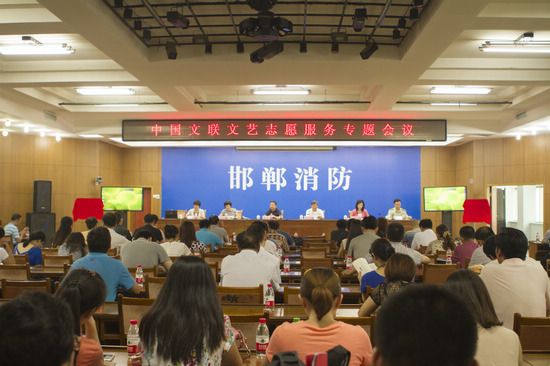 5日,文藝志愿服務團還參觀了邯鄲市消防支隊文藝培訓基地,并出席邯鄲市文藝志愿服務基地揭牌儀式。中國文聯文藝志愿服務中心副主任廖懇作了題為《志愿服務發展與文藝志愿服務工作》的報告,與邯鄲市文聯、市宣傳部的有關同志進行了現場交流。邯鄲市文聯主席張海英表示,將結合基層開展文藝志愿服務工作的特點和需求,推進邯鄲文藝志愿服務實現協會總動員、基層全覆蓋、水平再提升。