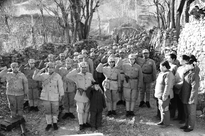 耿三七:鄉親們,我們今天就要走了,今生今世只要我們還活著,我們就不會忘了是阜平人民養育了我們,是晉察冀人民的大恩大德,我們才有今天,你們的囑托就是爹娘的囑托,你們的期盼就是爹娘的期盼,你們放心,兒子們不會讓爹娘失望的。同志們,我們為誰扛槍?為誰打仗?我們是誰的兵?