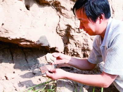 8月23日,甘肅省定西市馬家窯文化研究院工作人員,在定西市安定區(qū)香泉鎮(zhèn)云山村堡子坪一處窯坑遺跡發(fā)現(xiàn)窯壁及火道遺跡。該研究院在此地同時發(fā)現(xiàn)14處同類遺跡,這是首次發(fā)現(xiàn)馬家窯文化(距今5300~4200年)如此集中的窯坑遺存。 本報記者 程偉光攝