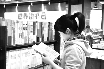 一位年輕人在浙江省臨安市新華書店內閱讀圖書。CFP