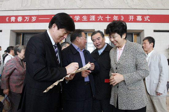 9月27日,由文化部、中國作協(xié)、國務(wù)院參事室、中央文史研究館主辦,中國國家博物館承辦的“青春萬歲——王蒙文學(xué)生涯六十年”展在中國國家博物館開幕。圖為著名舞蹈表演藝術(shù)家陳愛蓮觀看展覽。中國文藝網(wǎng) 黃遠(yuǎn) 攝