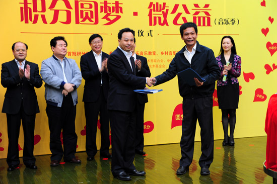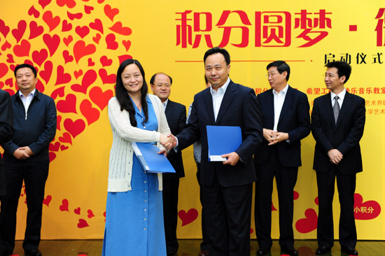 王洪章介紹,目前信用卡持卡人的積分存在很大程度的浪費,每個人的積分微小,但匯集起來就會有很大正能量;建行目前已經有1萬億積分,如果用于公益事業,就是20億元人民幣,可以做很多事情。徐沛東表示,目前中國文聯和中國音協已經排出多批音樂教育志愿者到全國邊遠地區支教,但這一缺口還很大;我們需要用派出、請進、遠程等多種方式讓邊遠地區的孩子們得到音樂教育的權利。