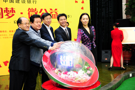 團中央常務書記賀軍科、中國文聯副主席徐沛東、中國建設銀行董事長王洪章、中央金融團工委副書記康華平、青年歌唱家呂薇共同啟動水晶球
