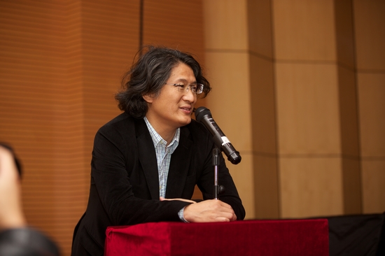 中國人民大學藝術學院黨委書記兼副院長鄭曉華介紹專家情況