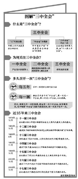 2008年召開的十七屆三中全會通過了《中共中央關于推進農村改革發展若干重大問題的決定》,這份文件被稱為“新形勢下推進農村改革發展的行動綱領”;2003年召開的十六屆三中全會通過的《中共中央關于完善社會主義市場經濟體制若干問題的決定》,被稱為“經濟體制改革的綱領性文件”……