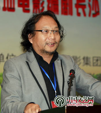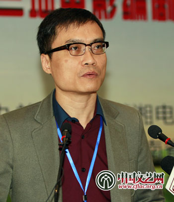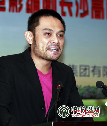 圖為《刺陵》編劇林超榮發(fā)言,“美國人都開始講中國故事了,比如《功夫熊貓》,我的孩子看得很開心,我卻很驚慌。”中國文藝網(wǎng) 張志勇 攝
