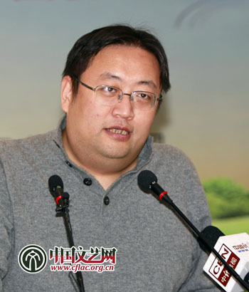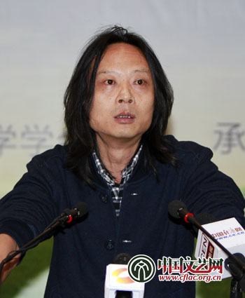 圖為瀟湘動漫文化有限公司編劇李濤發(fā)言,“中國的功夫、熊貓,產(chǎn)生了美國的《功夫熊貓》,這不是中國故事,是‘香蕉’故事。”中國文藝網(wǎng) 張志勇 攝