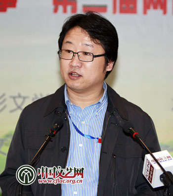 圖為《家有兒女》編劇費明發(fā)言,“好的電影展現(xiàn)的是有力度的價值觀,而不是偽價值觀。”中國文藝網(wǎng) 張志勇 攝