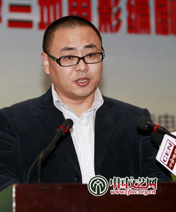 圖為《說好不分手》編劇閆剛發(fā)言,“好萊塢從沒講過中國故事,有的只是中國元素、美國夢?!敝袊乃嚲W(wǎng) 張志勇 攝