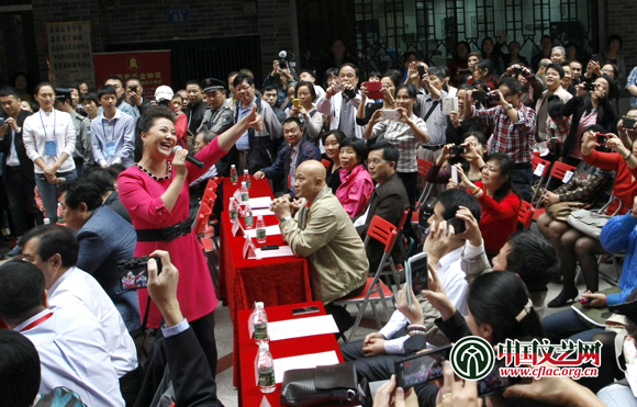 第九屆中國音樂金鐘獎在廣州開幕。圖為金鐘進社區(qū)活動,金鐘獎評委王麗達在廣州社區(qū)群眾中歌唱。張大勇 攝