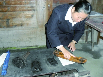 連城四堡雕版印刷基地員工正在演示印刷工藝(本報記者郭超攝)