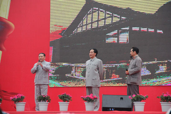 毛澤東、周恩來、鄧小平的特型演員王霙、劉勁、盧奇向老區人民問好 中國文藝網 丁薇 攝