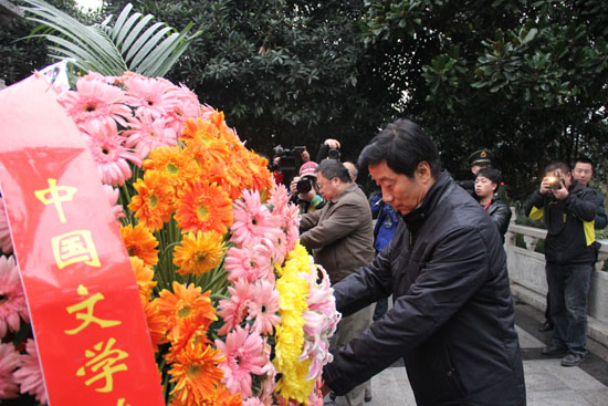 中國視協主席趙化勇,分黨組書記、副主席張顯代表中國文聯、中國視協向扎西烈士敬獻花圈 中國文藝網 丁薇 攝