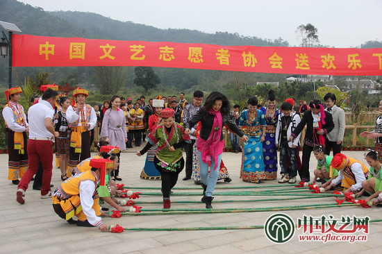 中國文藝志愿者協(xié)會(huì)帶領(lǐng)藝術(shù)家前往什寒村分會(huì)場以聯(lián)歡的形式與當(dāng)?shù)厝罕娀?dòng)演出 中國文藝網(wǎng) 孫菁 攝