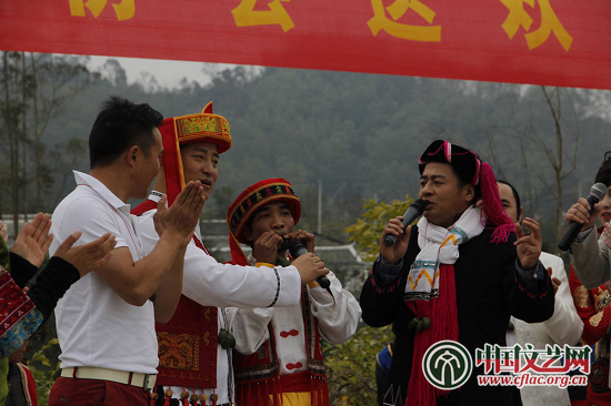 文藝志愿者與什寒村少數(shù)民族群眾對歌聯(lián)歡