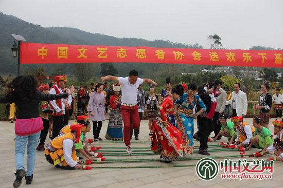 中國文藝志愿者協(xié)會(huì)帶領(lǐng)藝術(shù)家前往什寒村分會(huì)場與當(dāng)?shù)乩枳迕缱迦罕娺M(jìn)行互動(dòng)演出 中國文藝網(wǎng) 孫菁 攝