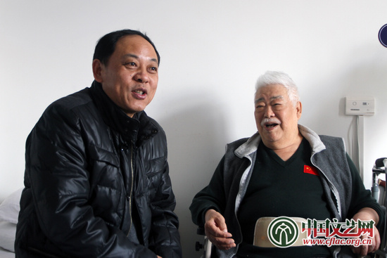 夏潮與于洋老師和陪護(hù)的老伴親切交談 中國文藝網(wǎng) 單鳴 攝