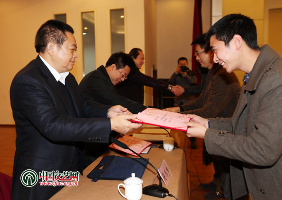 圖為與會領導為四川省文聯系統優秀網絡信息工作通信員頒獎。中國文藝網 張志勇 攝