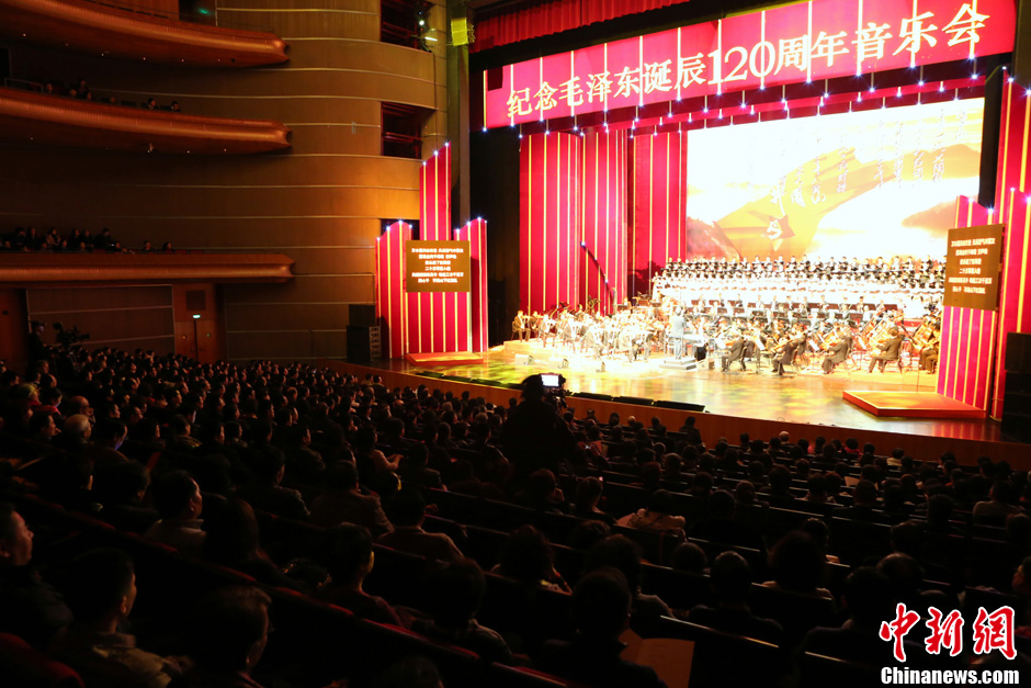 12月25日晚,《人民的毛澤東》紀念毛澤東誕辰120周年音樂會在國家大劇院舉行,上千名首都各界群眾共同觀看了這臺音樂會。中新社發 李慧思 攝