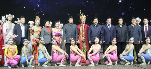 12月27日,第八屆中國雜技金菊獎第三次劇目獎頒獎儀式在河南濮陽舉行。圖為與會領(lǐng)導和表演人員合影。中國文藝網(wǎng) 何瑞涓 攝