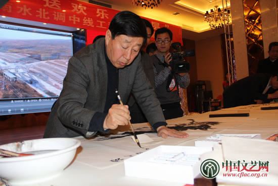 全國政協常委、中國書法家協會副主席蘇士澍以書法的形式贊揚了南水北調工程建設者們的無私奉獻精神。中國文藝志愿者協會 桑健博 攝