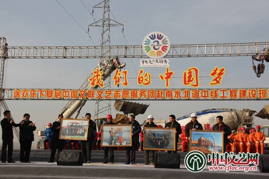 中國攝影家協會分黨組副書記王鄭生帶領攝影志愿者們向南水北調工程建設者贈送攝影作品 中國文藝網 董大汗攝影