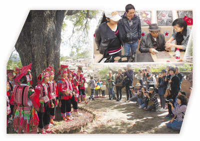 下圖:云南藝術(shù)學院設(shè)計學院師生調(diào)研紅河石屏彝族花腰文化。