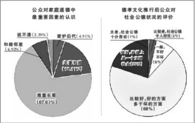 德孝文化建設有效提升了群眾個人素質,也改善了鄰里關系,促進了社會和諧。與村民座談時,陶村鎮張良村的村民提到以前村里有些年輕人游手好閑不務正業,現在這些情況已經基本沒有了。北城街道東留村村民說以前村里有很多年輕人不干活,就知道打麻將,村委做工作勸導他們去工作、去掙錢,現在村里的不良現象少多了。貴家營村曹書記表示,干部要起到帶頭作用,用道德感化老百姓,大家的誠信提高了,比如村民包地,以前需要先付錢再給地,現在不需要了。回收的問卷數據顯示,超過84%的人認為目前的鄰里關系很好,能夠互相幫助。河東東街社區會組織社區內的老年一起過節聚餐,鄰里關系得到了加強。貴家營村民提到村里廣播會給村民們講些處理家庭關系、鄰里關系的道理。洗馬村趙主任提到德孝文化開展以來,遇到不孝順的村民,村干部直接去家里跟他們講道理。以前有個村民每個月只給父親100元錢,村主任親自去他家勸導后,改觀很大。總的來說,德孝文化活動使鹽湖區的社會風氣得到了改善。20%的群眾認為推行德孝文化之后,鹽湖區可以稱得上是一個文明社會,68%的群眾認為與以前相比社會風氣有所改善。