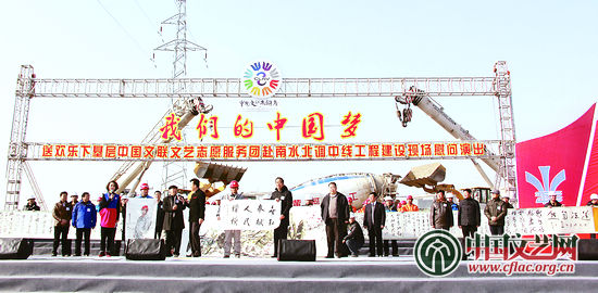在南水北調中線工程勝利完工和2014年元旦來臨之際,2013年12月28日至29日,中國文聯文藝志愿服務團來到南水北調中線河南段建設工地和湖北丹江口市移民新村,開展了“我們的中國夢——送歡樂下基層”文藝志愿服務活動。