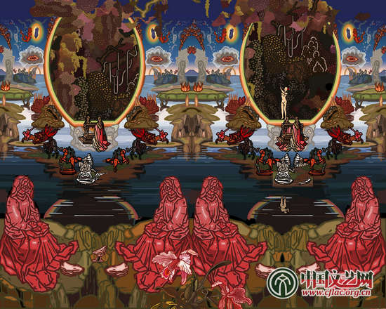 想象力是開啟藝術之門的鑰匙,而在丁寧看來,在數字藝術創作的諸多挑戰中,對想象力的挑戰是根本性的?!皵底炙囆g發展最快的是好萊塢虛擬空間。例如電影《盜夢空間》,人們已經搞不清是第四度、第五度還是第五度以后的空間,空間的概念復雜到遠遠超出原有三度空間的理解,這樣的挑戰是對想象力非常徹底的一種顛覆。隨著電影異度空間和其他數字藝術異度空間的發展,對數字藝術家想象力的挑戰是根本性的?!?/p>