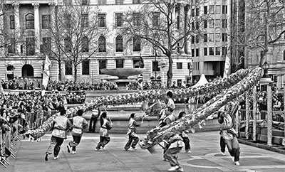 為慶祝中國農歷新年,英國倫敦市中心特拉法加廣場隆重舉行舞龍舞獅表演。本報記者 白 陽攝