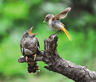 二級佳作 隴原飛羽之紅尾鴝哺鵑(組照) 趙成軍攝