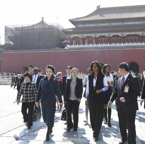 彭麗媛和米歇爾一起參觀故宮