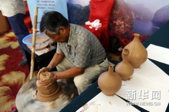 鈞瓷燒制技藝國家級傳承人楊志展示技藝。新華社記者 金良快 攝